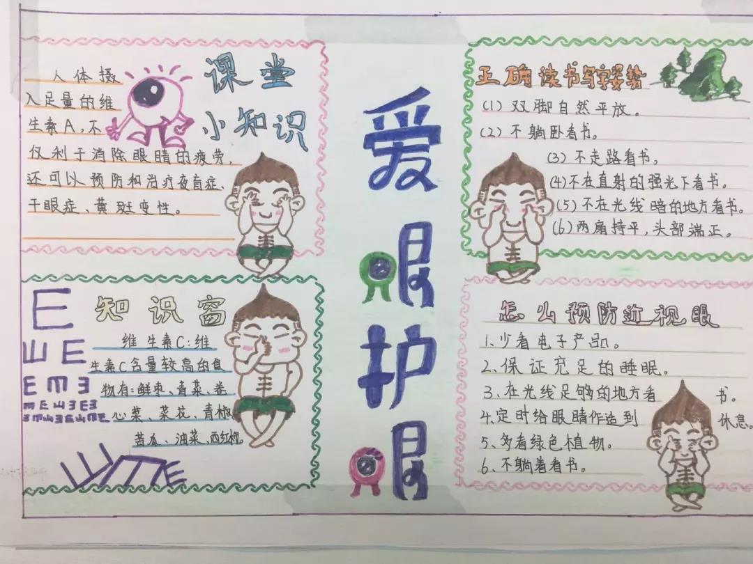 保護(hù)視力很重要,不良習(xí)慣要改掉。如何改?看看孩子們的板報就知道~