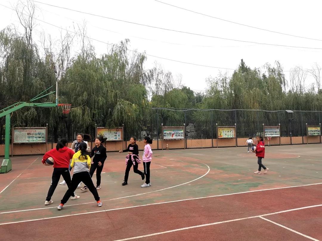 視力檢測時,操場另一端不少同學(xué)正在愉快地做游戲,其樂融融,還有一部分學(xué)生正享受秋日陽光的沐浴,十分開心?;@球場上,大家自覺地分成小組進行對抗比賽,別看他們年紀(jì)小,三步上籃的動作可是非常標(biāo)準(zhǔn)的,籃球應(yīng)聲入筐,完美!