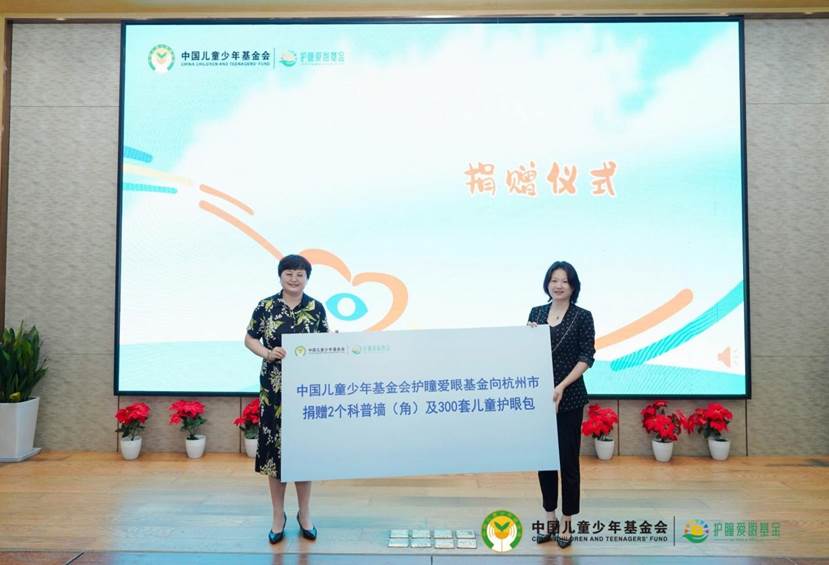 2023年7月28日,中國兒童少年基金會在杭州市上城區(qū)澎致小學(xué),舉辦“呵護(hù)孩子眼睛 守護(hù)孩子未來”護(hù)瞳愛眼基金公益項目杭州站捐贈儀式。