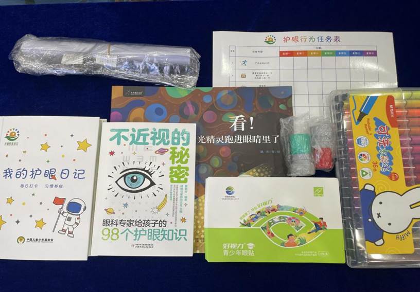 本次捐贈的護(hù)眼包包含護(hù)眼行為任務(wù)表、兒童科普繪本、護(hù)眼知識手冊、我的護(hù)眼日記、手繪彩筆、印章,以及愛心企業(yè)捐贈的二次元青少年眼貼,讓孩子們在趣味中養(yǎng)成愛眼護(hù)眼的好習(xí)慣。