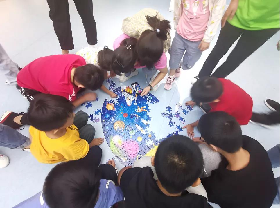 現(xiàn)場(chǎng)志愿者姐姐們還為即將參與活動(dòng)的小朋友準(zhǔn)備了不少游戲和小禮品,想想就有點(diǎn)小期待呢。航天手繪,繪出五彩繽紛的色彩;立體拼圖,和小伙伴一起發(fā)掘不一樣的世界?,F(xiàn)場(chǎng)還有突突突突突突的泡泡機(jī)~