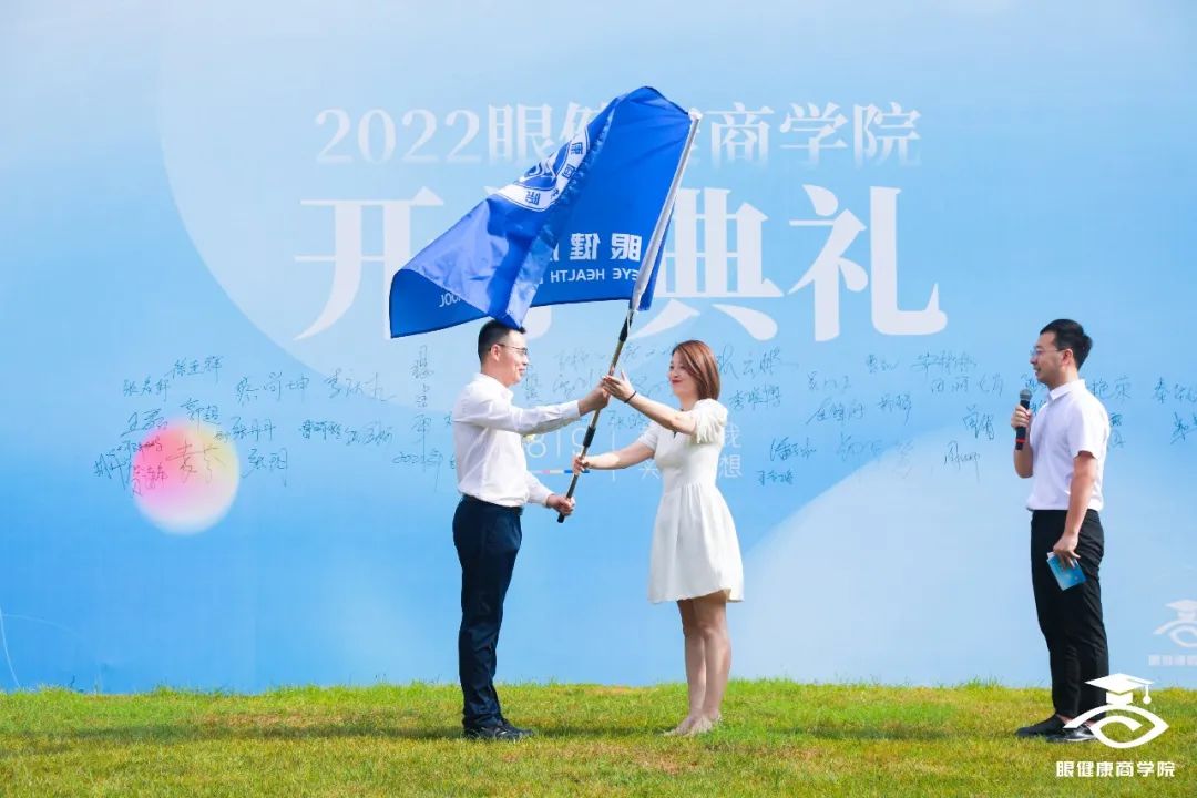 眼健康商學(xué)院旗幟交接儀式上,19級(jí)副教務(wù)主任曹凱和22級(jí)班主任楊靜交接了旗幟。這面旗幟此刻卻無比沉重,因?yàn)樗粌H引領(lǐng)、見證了一代代學(xué)員前進(jìn)的腳步,也傳承了守護(hù)國(guó)人眼健康的使命與擔(dān)當(dāng)。