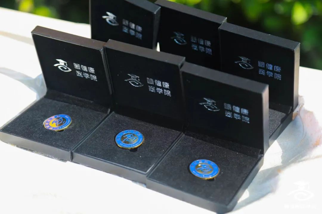 眼健康商學(xué)院院長(zhǎng)楊建軍、執(zhí)行院長(zhǎng)張?jiān)迄i、院長(zhǎng)助理李聰博和教務(wù)副主任王艷紅親手為2022級(jí)新生佩戴上象征著智慧與創(chuàng)新的?;?,讓學(xué)員有更多的儀式感、幸福感、歸屬感,激勵(lì)他們?cè)谘劢】瞪虒W(xué)院的學(xué)習(xí)與發(fā)展。