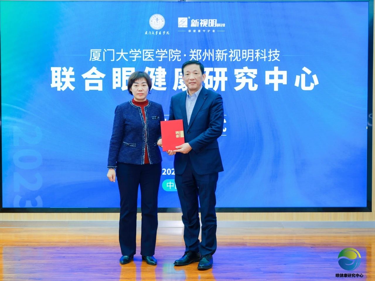 (左:廈門大學(xué)眼科研究所所長 劉祖國 右:鄭州新視明科技總經(jīng)理 張秋霞)