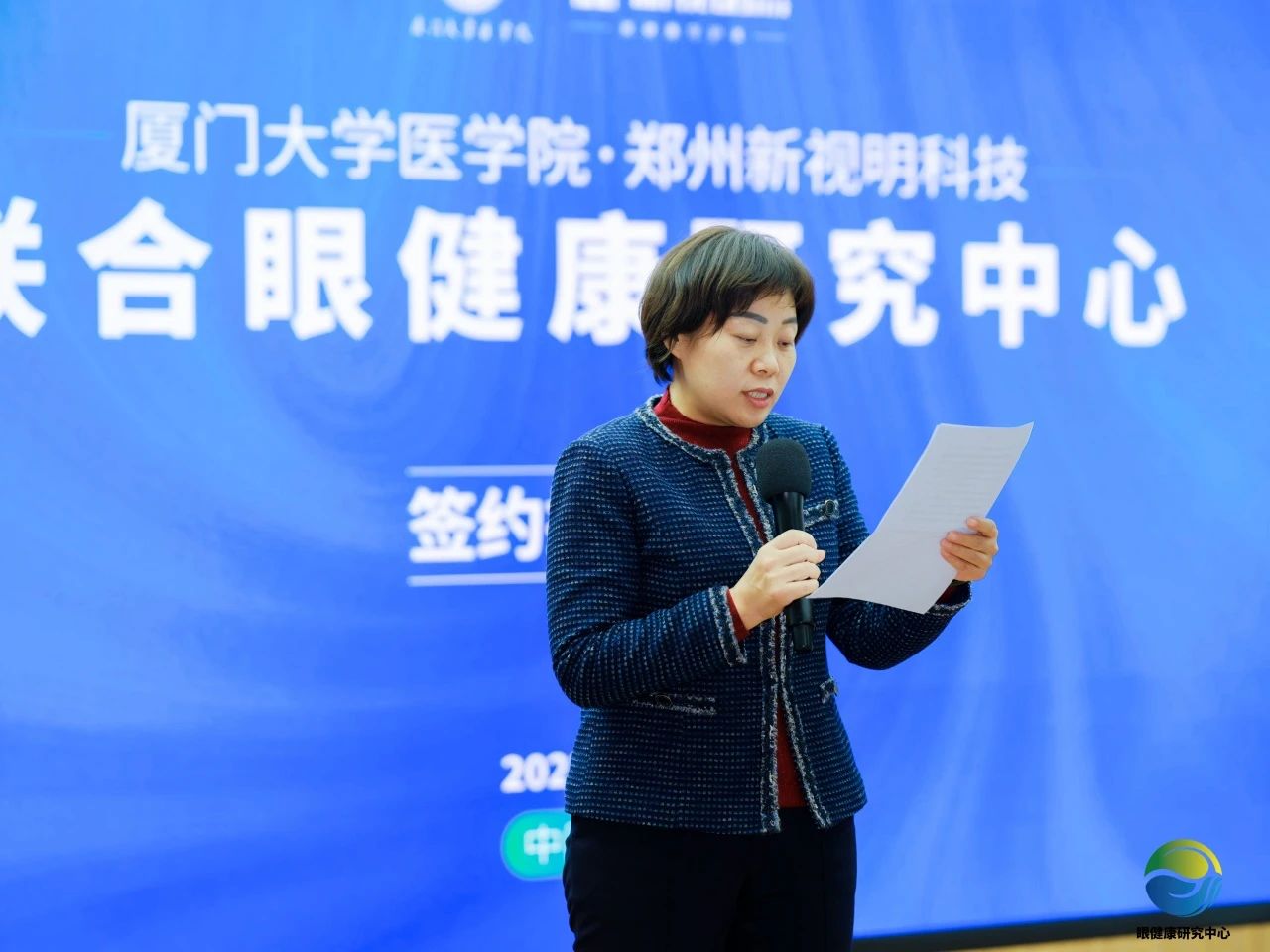 廈門大學(xué)醫(yī)學(xué)院與鄭州新視明科技聯(lián)合眼健康研究中心簽約揭牌儀式,由鄭州高新技術(shù)產(chǎn)業(yè)開發(fā)區(qū)黨工委副書記王德敏主持。他指出,眼健康受損已經(jīng)變成所有年齡段人群面臨的大問題,群眾多層次多樣化的眼健康需求亟需滿足。聯(lián)合眼健康研究中心的成立,是主動(dòng)對(duì)標(biāo)國家重大戰(zhàn)略要求、積極回應(yīng)人民群眾護(hù)眼需求的擔(dān)當(dāng)表現(xiàn)。