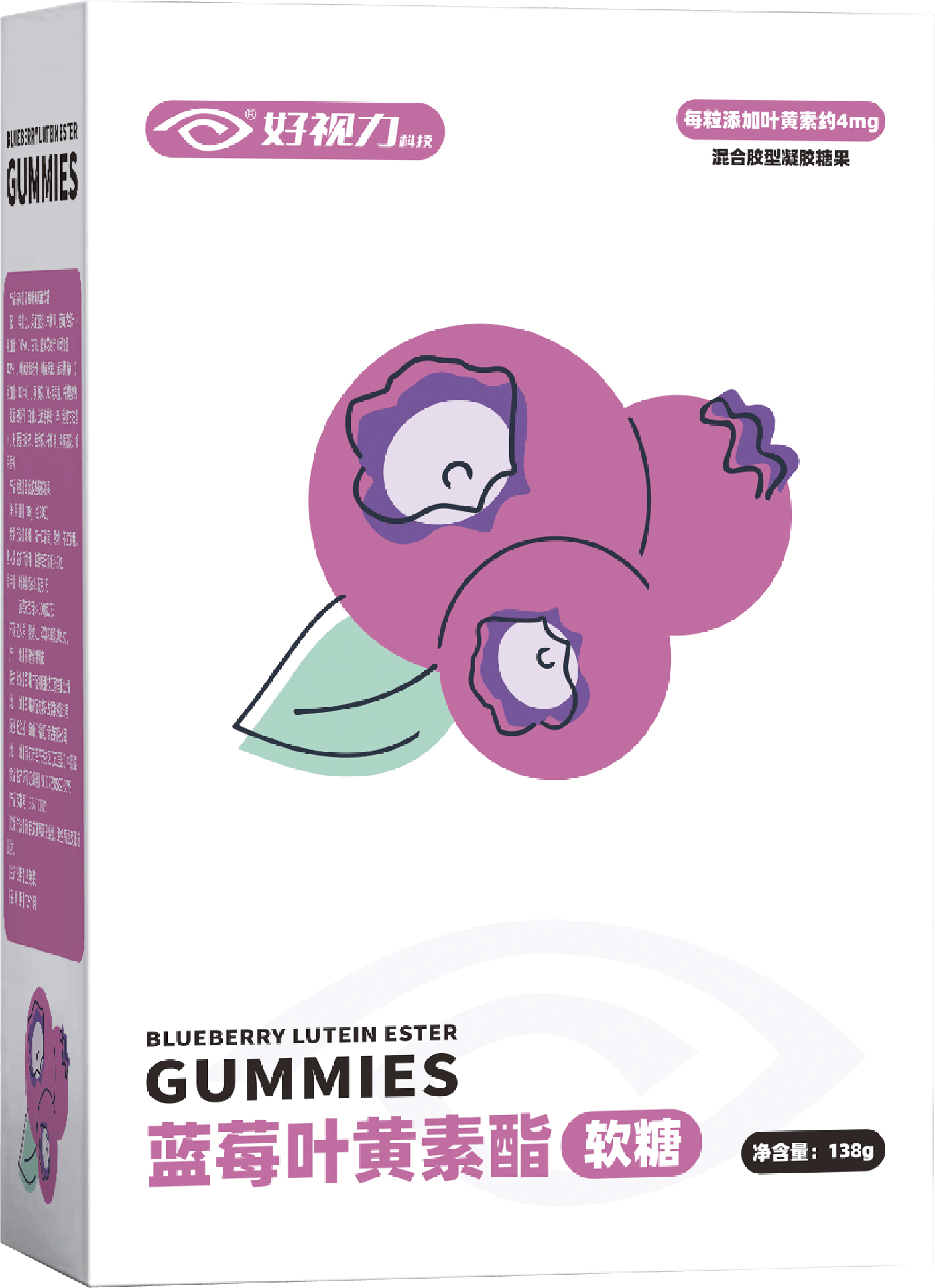 營養(yǎng)軟糖 彈力可口藍莓葉黃素酯軟糖從黑龍江省大興安嶺的有機野生藍莓中提取花色苷,搭配葉黃素酯,營養(yǎng)滿滿,可口Q彈,適合全家享用~