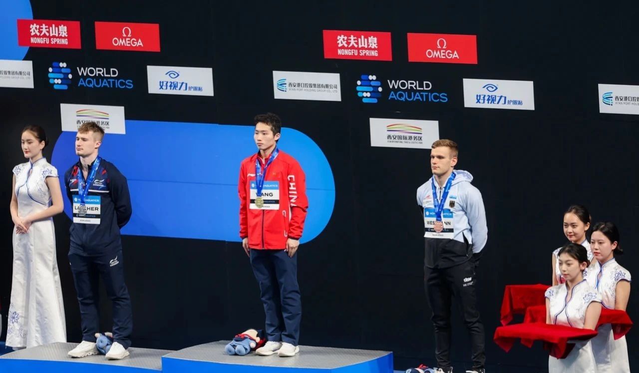 男子三米板決賽爭(zhēng)奪,中國(guó)選手王宗源以毫無(wú)懸念的優(yōu)勢(shì),五跳553.15分獲該項(xiàng)冠軍,至此,中國(guó)跳水夢(mèng)之隊(duì)已在此次賽事中奪得六金!