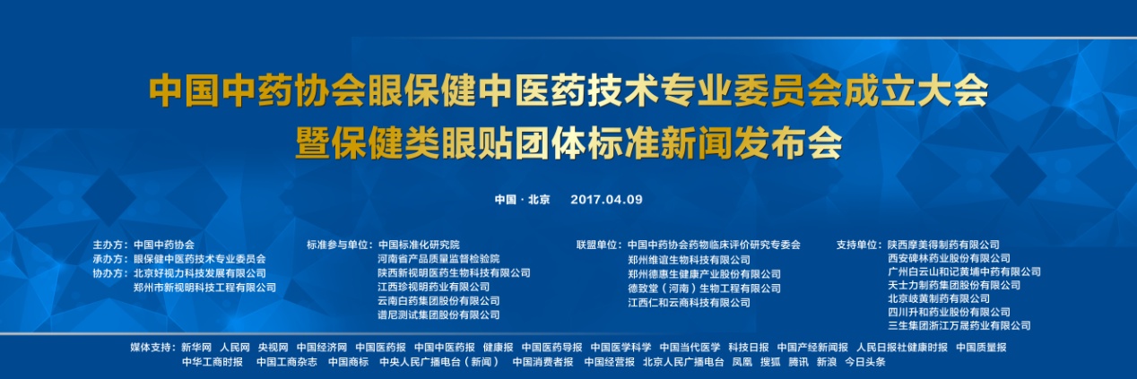 2017年4月9日,中國(guó)中藥協(xié)會(huì)眼保健中醫(yī)藥技術(shù)專業(yè)委員會(huì)成立大會(huì)暨保健類眼貼團(tuán)體標(biāo)準(zhǔn)新聞發(fā)布會(huì)在北京會(huì)議中心隆重召開(kāi)。